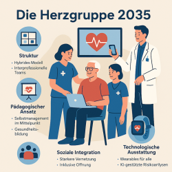 Die Herzgruppe 2035 wird sich nicht nur durch technologische Innovationen (Digitalisierung) und hybride Strukturen auszeichnen, sondern auch durch eine klare Ausrichtung auf Prävention, Empowerment und soziale Vernetzung.